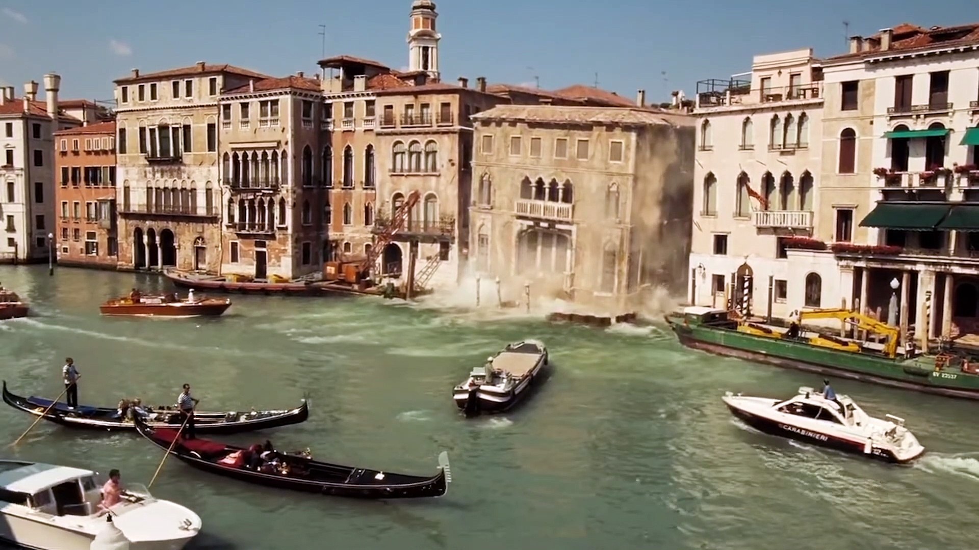 For the Venice finale, the scene with Bond on a sailboat was filmed aboard a 54-foot yacht named Spirit. She was transported from her builders in Suffolk, England, and had to be demasted to fit under various Venetian bridges to reach the filming location making her the first sailing boat to go up the Grand Canal in Venice for 300 years.
