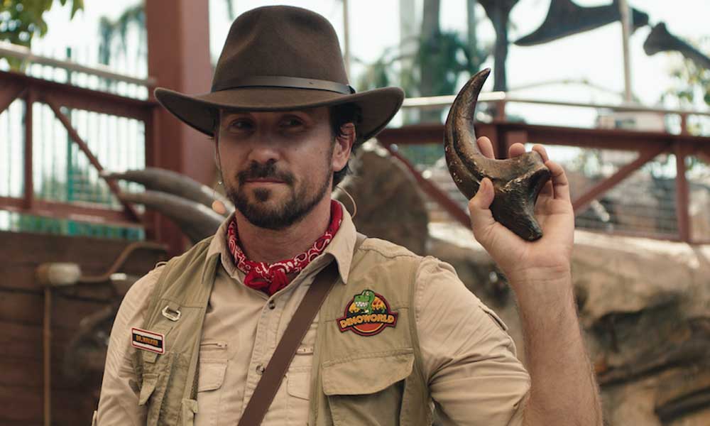 It manages to make its way to the suburbs, and in town near dinosaur park, I forget the name. Dr Grant Walker (Capes) is a palaeontologist, but spends his time rapping to kids about the gift shop, with Denny, who’s dressed up like Barney the Dinosaur. It’s not the life he expected.