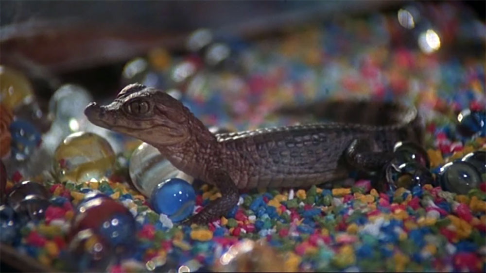 It starts right off the bat with weaponized childhood trauma. A little girl, and a cute baby alligator named Ramone, as a vacation souvenir that would never, under any circumstances, exist north of Florida. When Ramone outgrows his welcome (and his tank), Dad demonstrates the kind of parenting decision-making that would get you banned from every group chat these days, and flushes him.