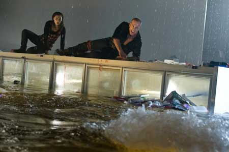 Which means the survivors are now trapped in a half-submerged supermarket with a super-predator that has suddenly discovered the convenience of indoor dining.