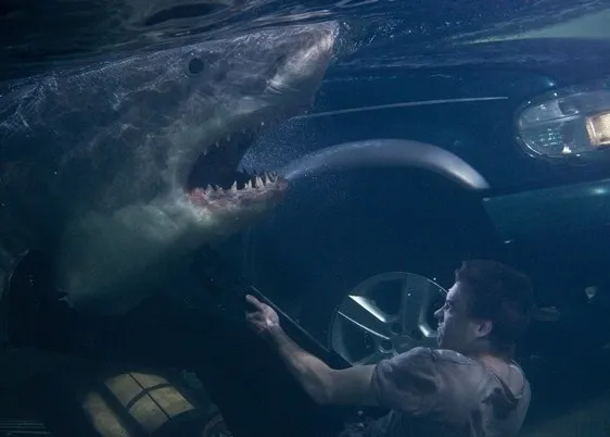 And the movie wrings surprising tension out of that concept. The parking garage sequences are especially effective, with characters trapped in murky water while the shark glides somewhere beneath the surface. You can’t see it. You can’t hear it. You just know it’s there. It’s a simple trick, but it works.