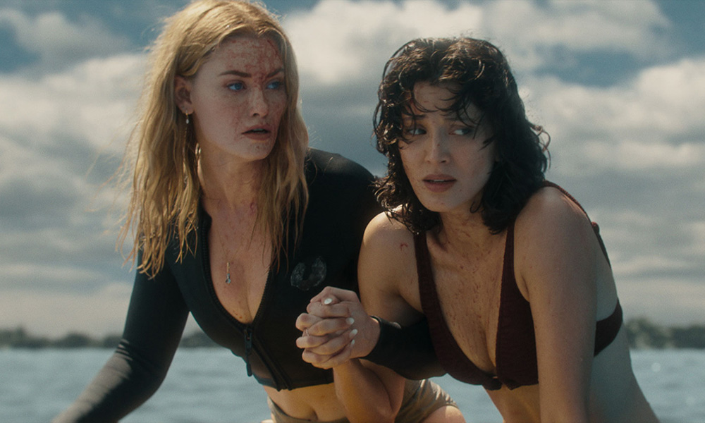 The girls make it to a rock and sit there for the rest of the movie, taunted by the killer whale.