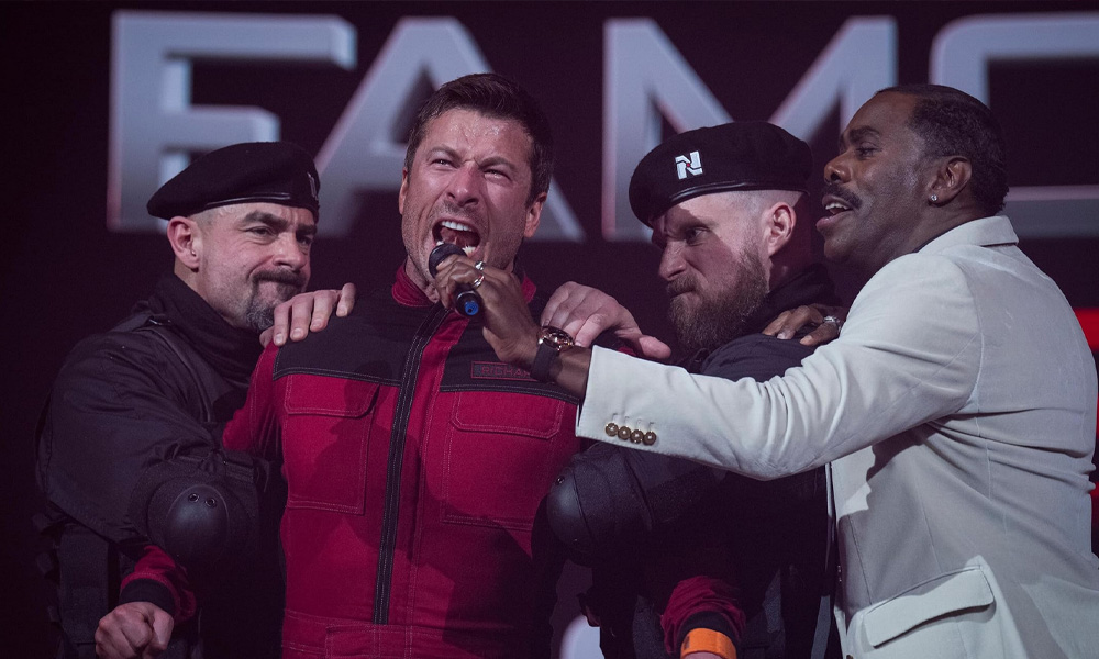 The audition/screening process that Richards undergoes is brief and feels rushed. Several game shows are on offer, but Richards gets stuck with The Running Man or nothing because he’s an angry, undesirable who has been fired multiple times for standing up for workers’ rights.