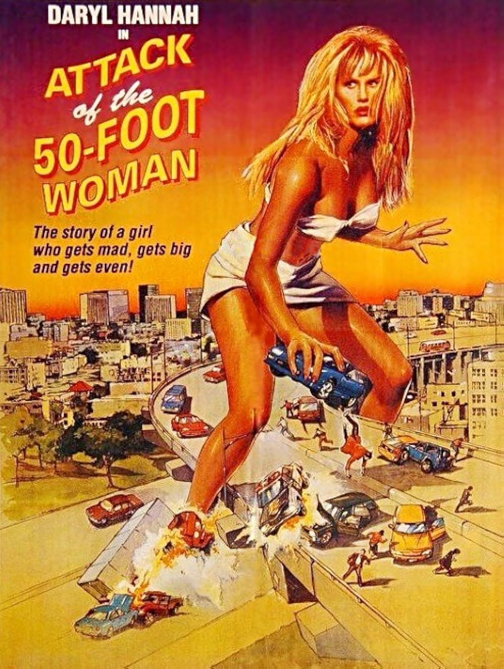 No, Quentin, it is not a movie about a woman with 50 feet. Calm down! It is a remake of the classic B-movie schlock Attack Of The 50 Foot Woman.