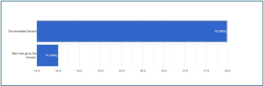 Ok, so you guys voted and the results, though closer than I expected, are in. (Don’t ask me why the bar chart is so weird, just look at the numbers.)