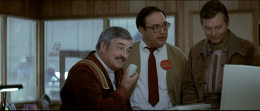 The fish out of water humor works really well. I don’t want to jump ahead but where Star Trek V went into silliness and sometimes farce, Star Trek IV balanced the humor perfectly. It never overshadowed the story or the gravity of the situation.