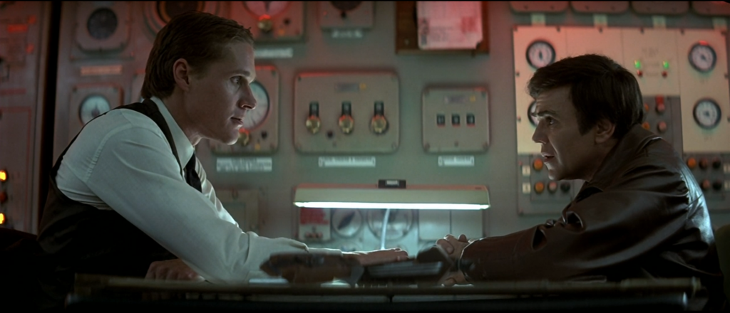 The surreal sequence with the crews heads popping up and changing was the actual first occurence of “morphing” on the silver screen. They actually scanned all the actor’s heads and then had one change into another. Willow was the movie that got the term into the zeitgeist but in actuality, this was the first time.