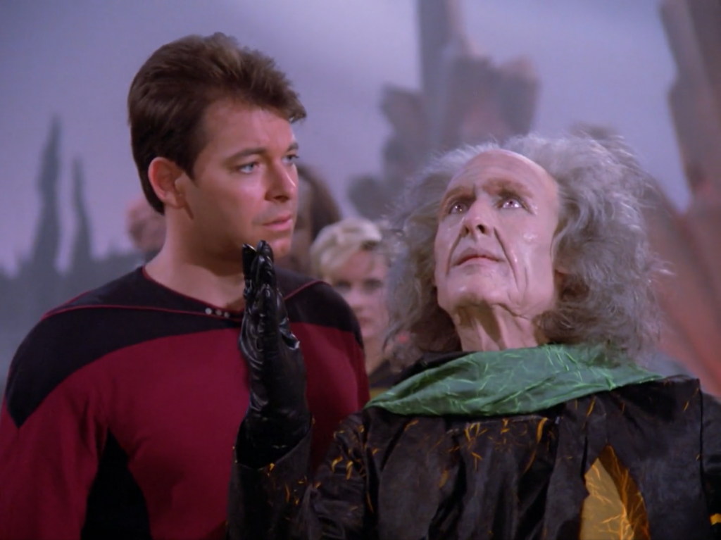 The Gorn in Arena may have had some legit gripe with the Federation even though how they handled it was completely evil. The Firengi here have no such legitimacy. They are thieves, liars, and really have not a single redeeming quality. That the portal would take anything they said seriously for even a moment stretches believability. It’s possible he didn’t and just wanted to test Riker though.