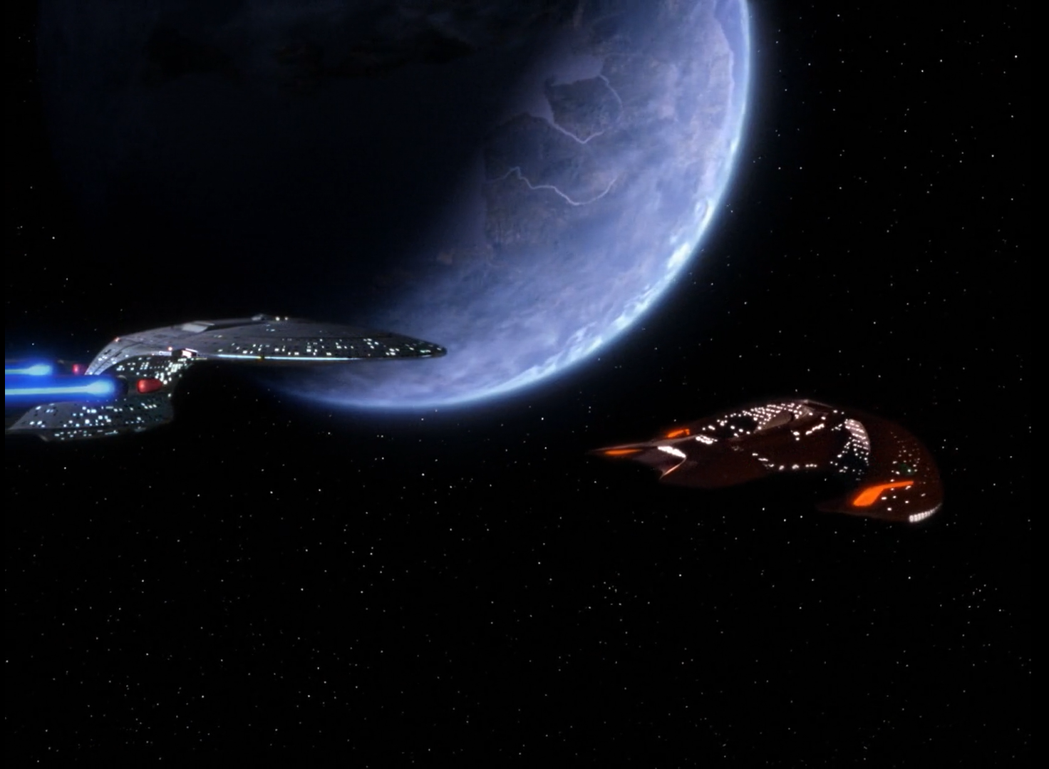 The Enterprise is in pursuit of a Firengi ship that has stolen a piece of technology. This is the first contact with this race. When the Firengi seemingly deploy a power draining weapon on them leaving them helpless, Picard reluctantly begins talks of surrender. The Firengi to his surprise refuse to surrender to him, and the crew realize that both ships are in this trap and the weapon is being deployed from the planet, an outpost for an empire that has died out tens of thousands of years ago. Can Riker and the away team figure out what’s holding them and stop it before the Enterprise loses all power and the crew freezes to death?
