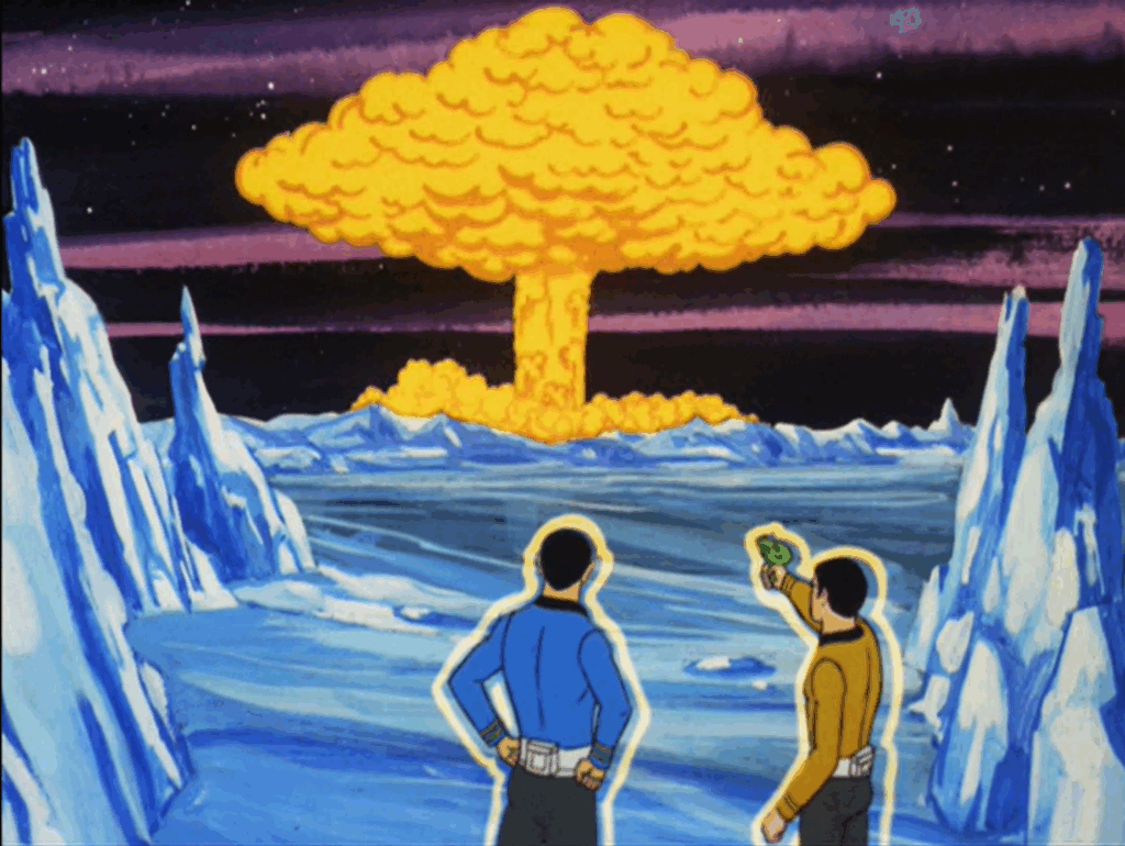 Sulu gets a lot of do this time. When the Kzinti try to read his mind, he keeps thinking about eating a carrot which makes the carnivores ill. He also tests the slaver weapon itself, setting off a minor nuclear bomb cloud at one point.
